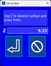 * De spindel beweegt vervolgens 5.0 mm omhoog (Als de “Z lift after setting surface” ingesteld is op 5.00)